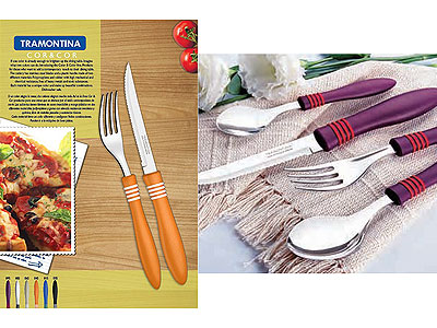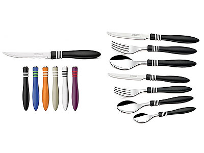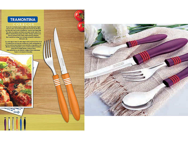 If one color is already enough to brighten up the dining table. Imagine what two colors can do. Introducing the Color & Color line. Products for those who want to add a contemporary touch to their dining table. The cutlery has stainless steel blades and plastic handles made of two different materials : Polypropylene and rubber with high mechanical and chemical resistance, free of heavy metals and toxic substances. Each material has a unique color and make up beautiful combinations. Ideal for table that stand out for their contemporary style.